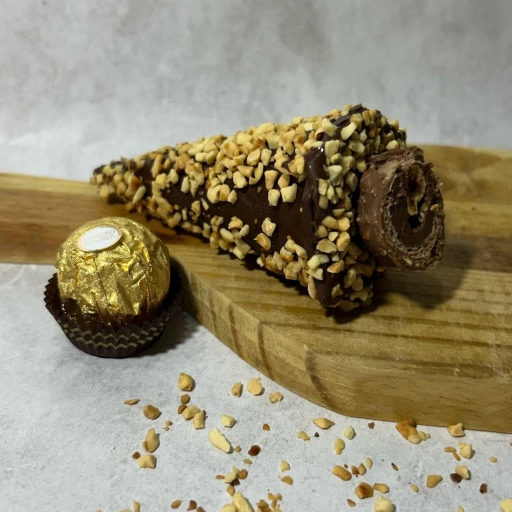 Uma maravilhosa casquinha banhada em chocolate meio amargo, com recheio brigadeiro de Ninho e creme de avelã, decorado ... Ver completo
